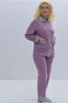 Calças compridas, com cintura elástica, a finalizar com rolinho.