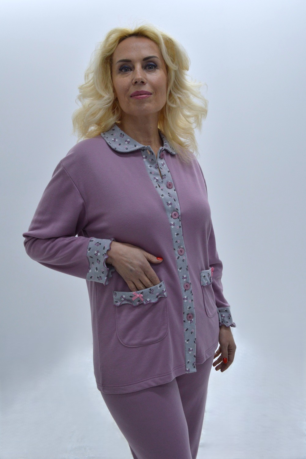 Casaco de manga comprida com gola e carcela, 2 bolsos frontais com laço em cetim. Acabamento de rolinho na base das mangas.